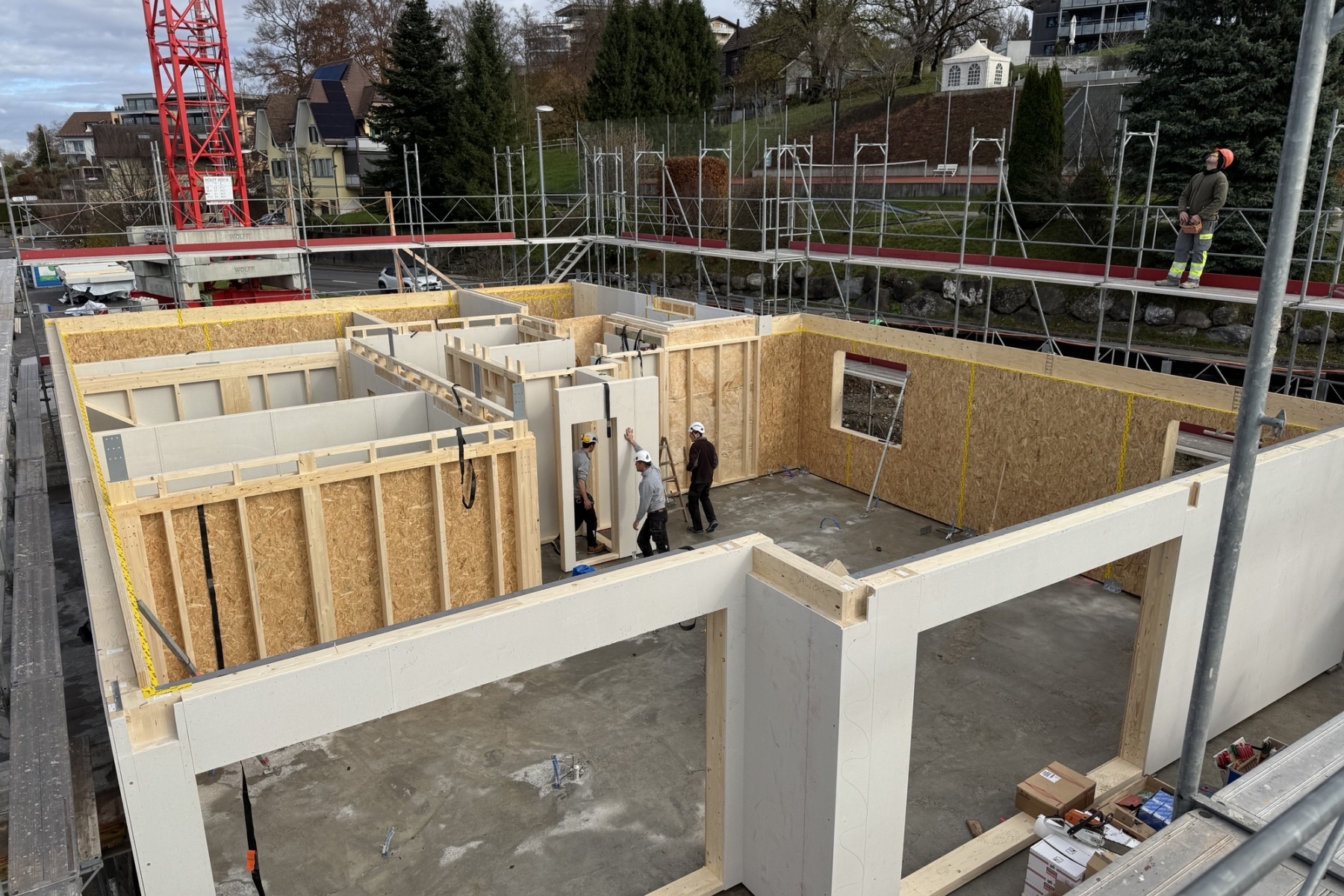 Die Baumeisterarbeiten sind abgeschlossen und wir konnten vom 3. bis 7. November, bei besten Wetterbedingungen, den viergeschossigen Holzbau aufrichten. Es folgt der Innenausbau und zudem erhält das Haus eine Holzfassade.
